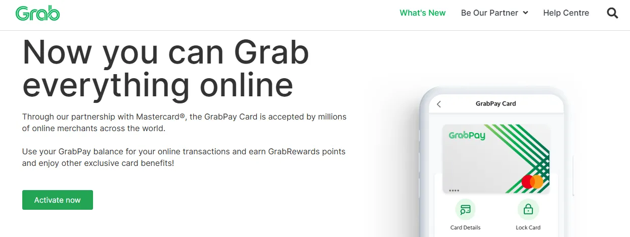 应用场景:绑定在 Grab App 内部,不仅可以支付外卖和网约车,还可以申请 GrabPay 数字借记卡(Mastercard)。