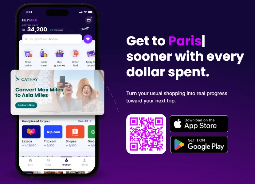 总收益:最高 15 MPD! 相当于消费 S$1,000 就能拿回 15,000 里程(价值约 S$225),这才是真正的“吃饭省出机票”。