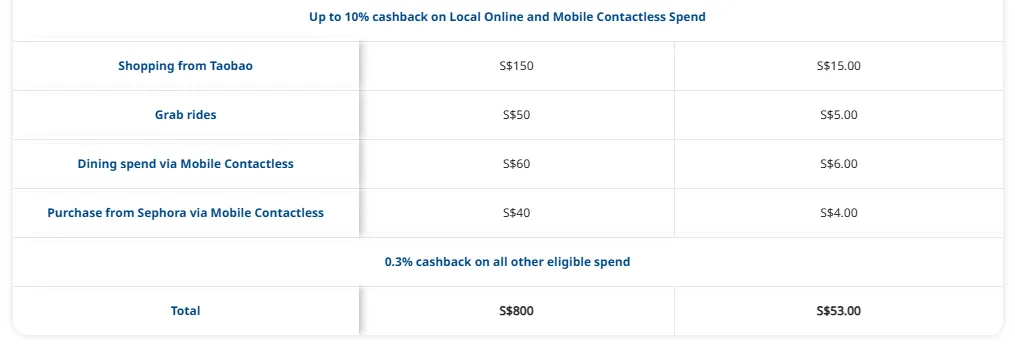 针对 Apple Pay, Google Pay 及所有在线购物。每月回扣上限约 S$60,门槛刚好 S$500。 |
