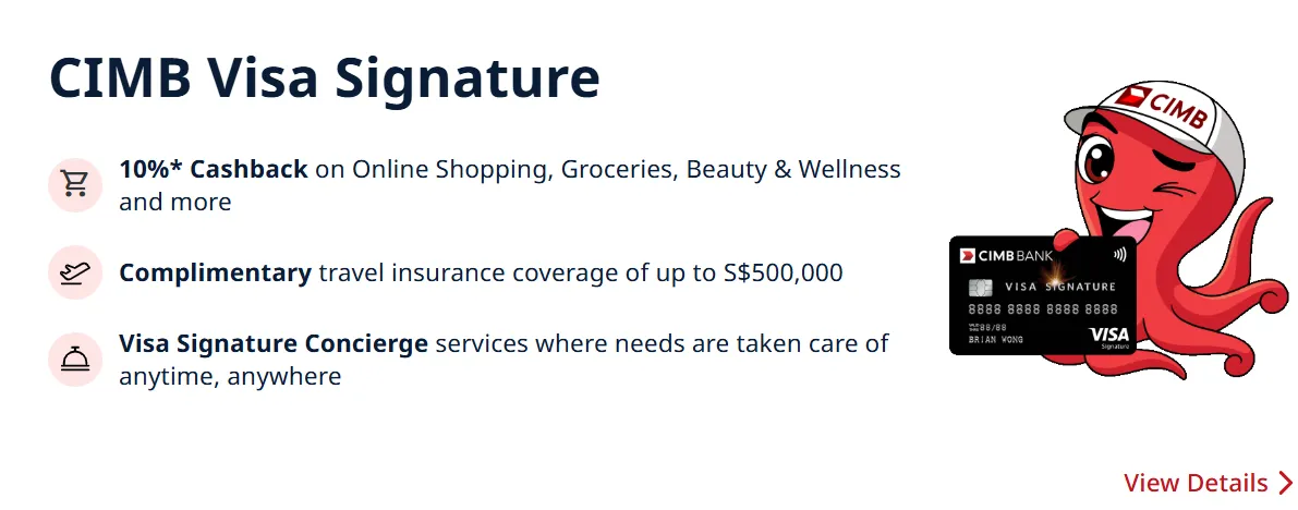补充家庭开销: 在新加坡,家庭每月的超市开销通常在几百新币左右。CIMB Visa Signature 的这一福利完美补充了网购之外的空缺,确保你的每一笔主要生存支出都能获得回馈。