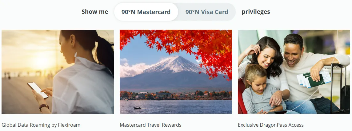 Mastercard 90°N:更适合作为“无脑备用卡”。因为部分支付平台对 Mastercard 的手续费略低于 Visa。