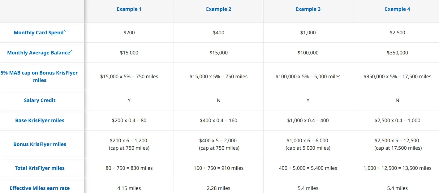 具体案例: 假设你只存了 SGD 1,000,那么你每个月能拿到的 Bonus Miles 上限大约只有 50 Miles。即便你当月刷卡消费了 $10,000,按照 5.0 mpd 的奖励,理论上应得 50,000 里程,但因为“紧箍咒”的存在,银行最后只会大方地给你 50 里程。