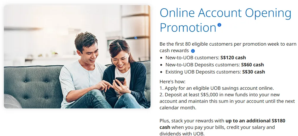千万不要“裸奔”开户!在 2026 年,UOB 针对新开户通常有以下奖励: